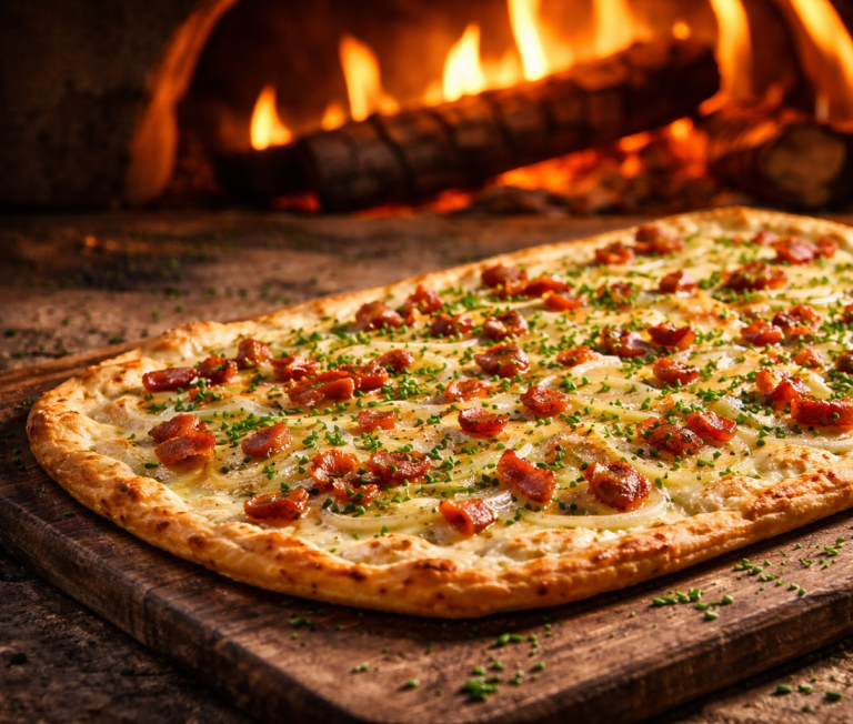 Handgemachte Flammkuchen mit frischen Zutaten – ein Genuss für jeden Gaumen.
